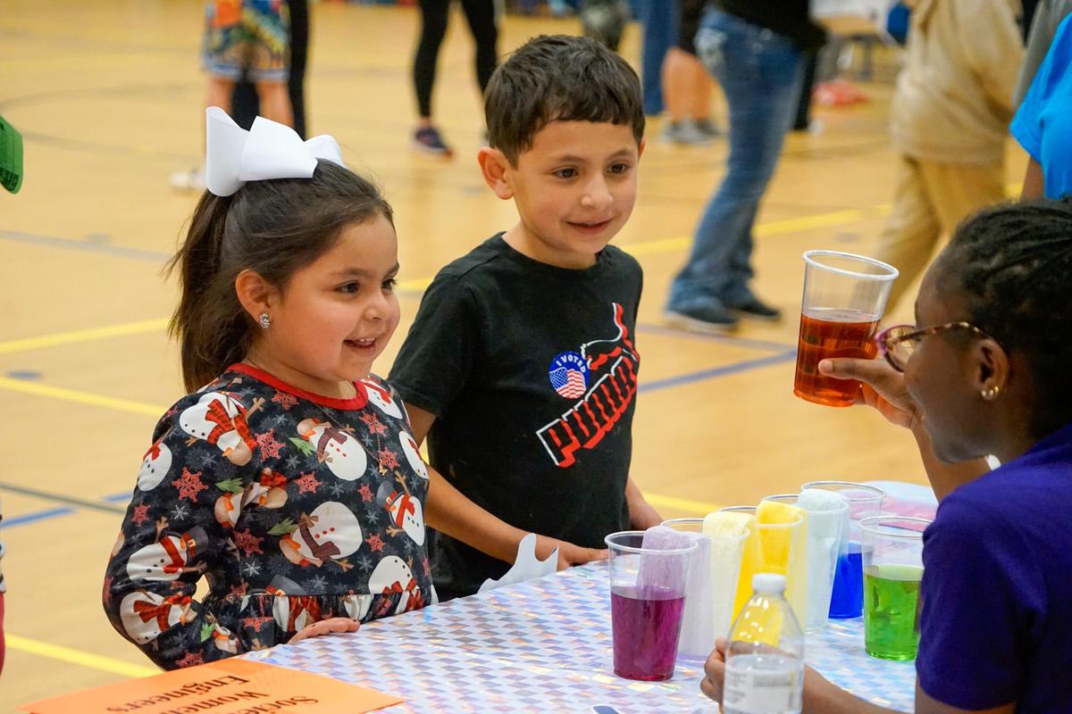 Hands-on learning also extended to drones, small helicopters, playground design, sound wave demonstrations, math games, and a scavenger hunt. Second-grade students displayed a veggie cart alongside student Science Fair projects. Families also enjoyed photo opportunities with Texas Roadhouse staff and mascot, and Buddy from HEB.